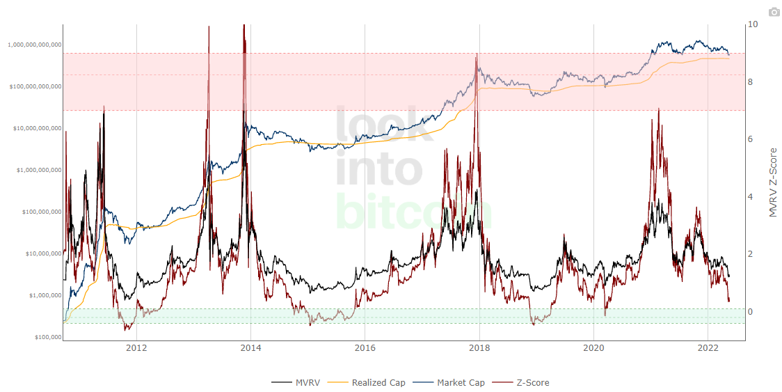 중장기적인 관점에서 저렴해졌을 때가 MVRV가 1 미만에 도달하기 때문이죠. 이번에 경제침체까지 동시에 겪어야 할 비트코인이기 때문에 아직 섣부른 매집보다는 좀 더 관망해볼 필요가 있어보입니다.