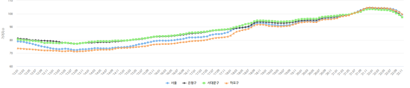 : 마포구 : 99.7 / 서대문구: 97.3 / 은평구: 97.3 (서울:99.3)