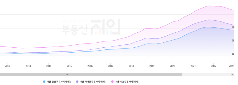 10년간 매매가 추이 (VS 마포구, 서대문구)